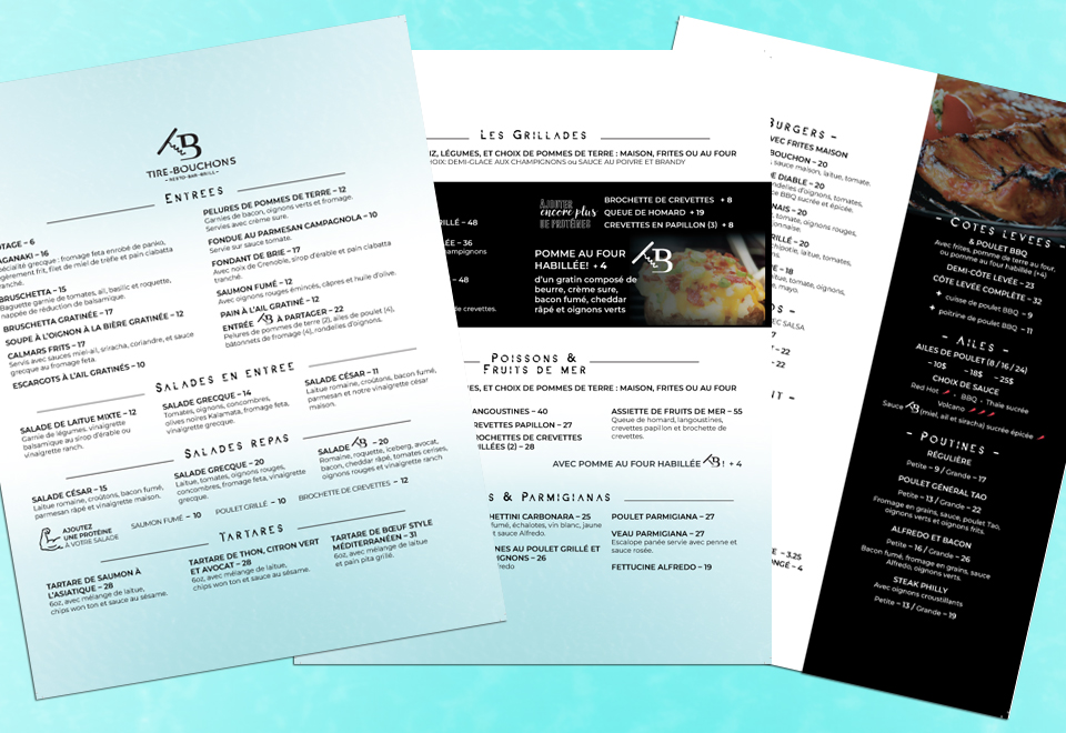 Nos hamburgers de boeuf de première qualité, côtes levées, poutines, poulet, et la fabuleuse Patate Habillée seront vous charmés!